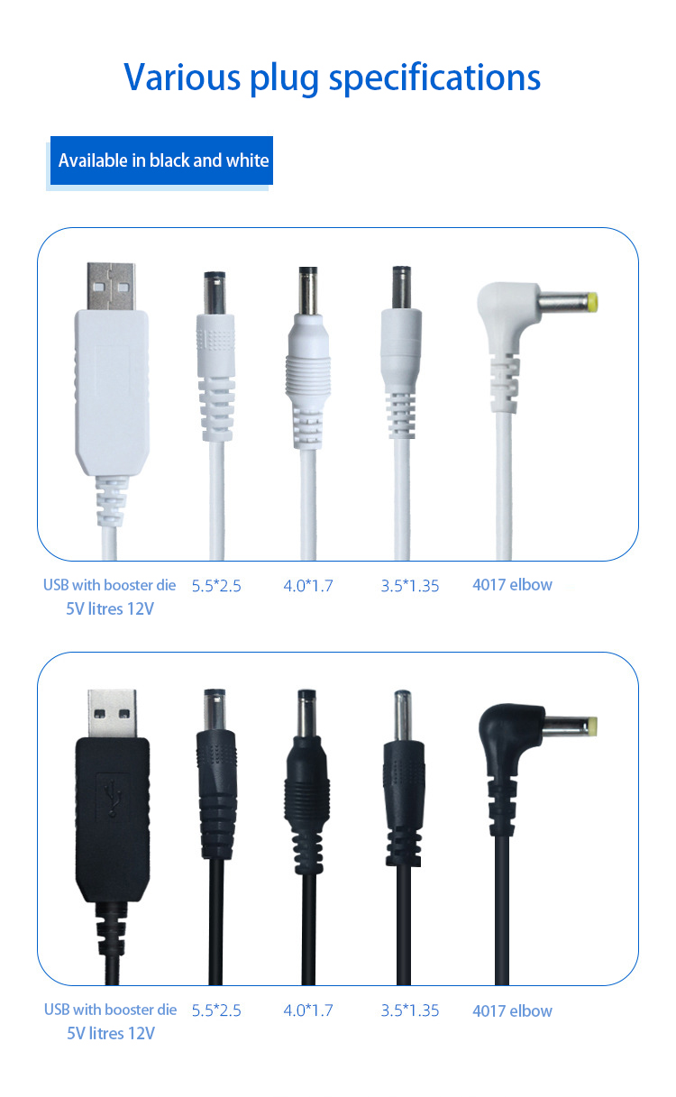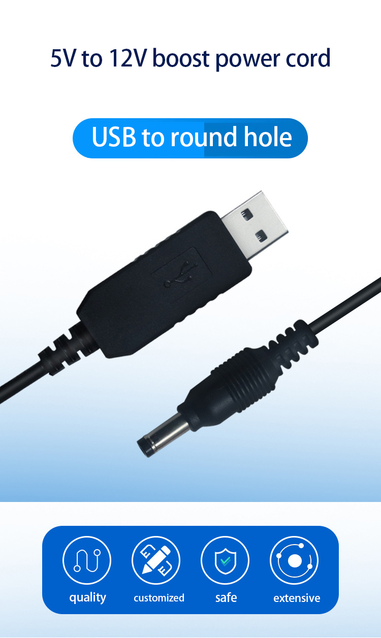 - Wire Name: USB to DC round hole booster power cord (5V to 12V)